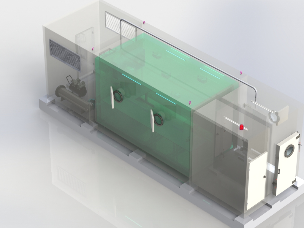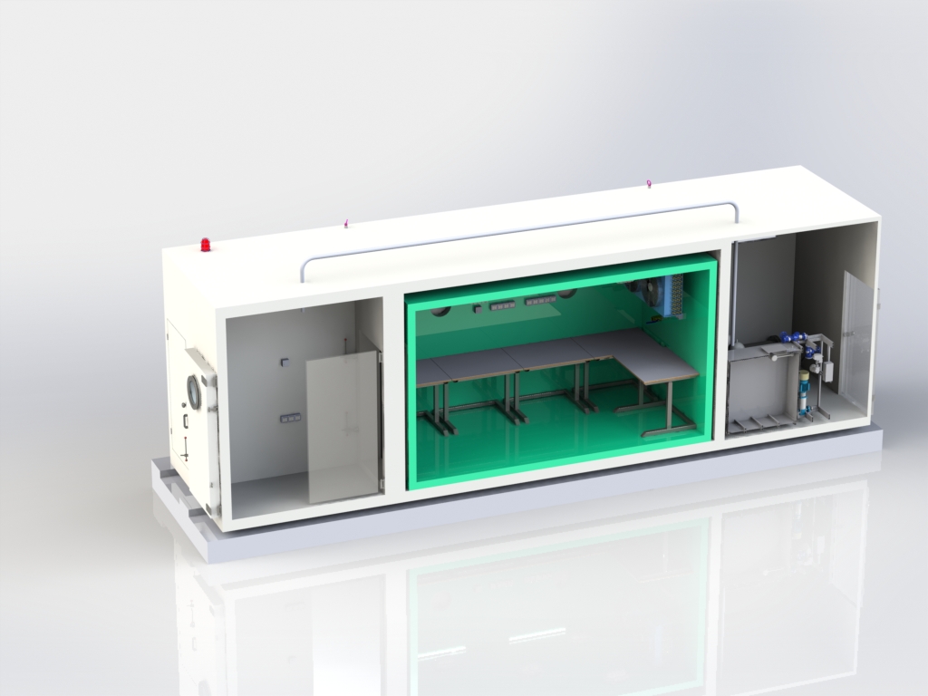 高原模擬艙為有人進入型。艙內(nèi)壓力、溫度、濕度、紫外線強度均為自動控制等。本模擬艙可以用于高原環(huán)境下人員訓練、野生動物保育和其它科學實驗。設備為一體化設計。僅需提供氧氣、自來水及供電即可維持使用。艙體的大小及功能可以根據(jù)需求進行設計。